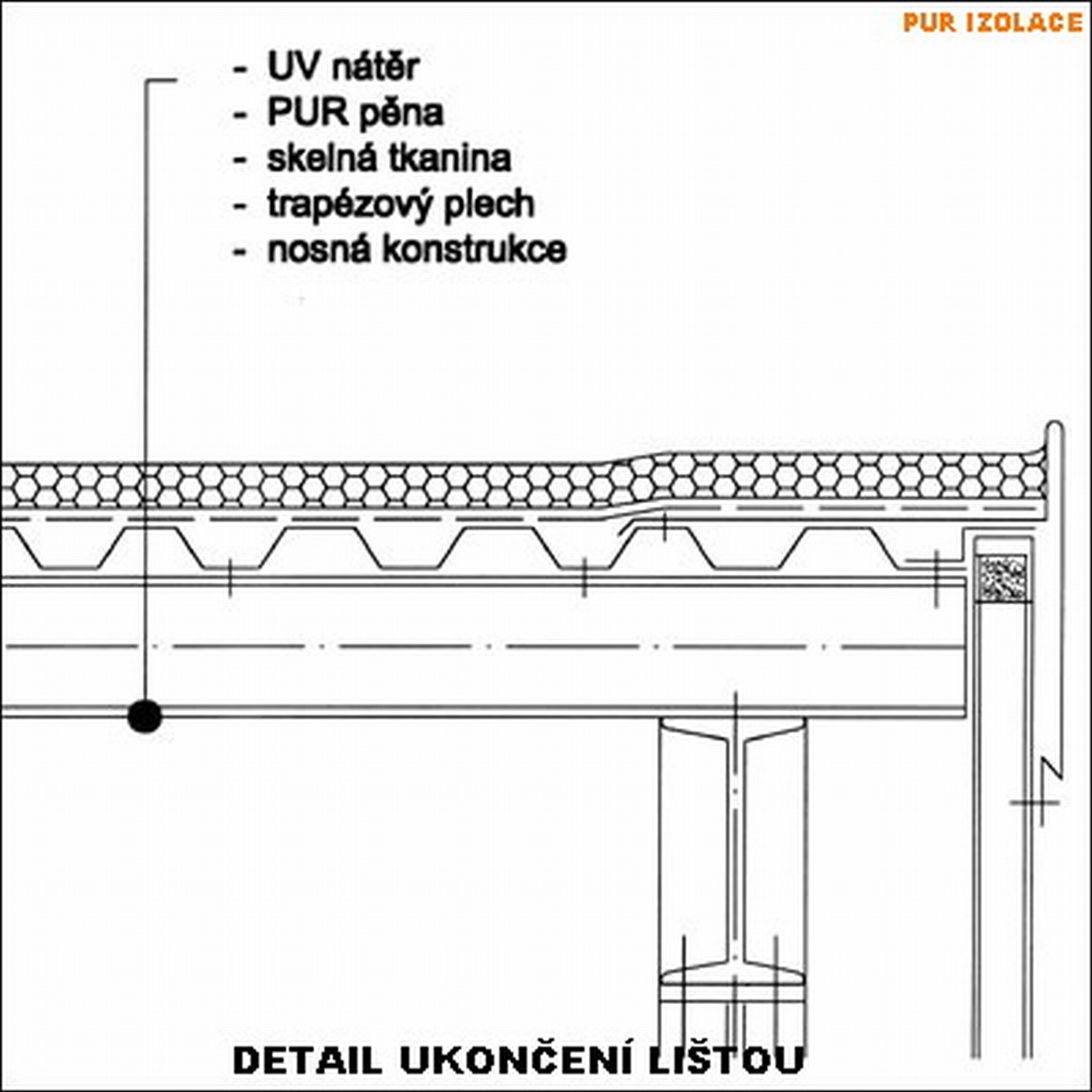 | A csarnok lemezszigetelésének részlete 30-35 mm vastag keményhabbal | |