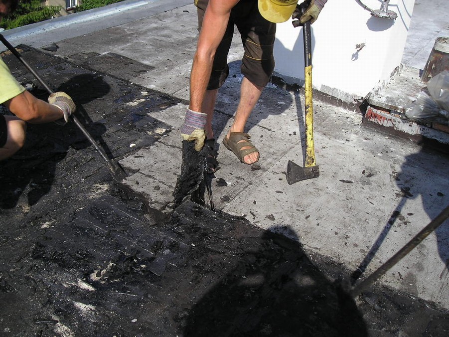 Az elsődleges döntés arról szól, hogy szükség van-e azok részleges vagy teljes felületű eltávolítására (állapotuktól vagy rétegeik közötti nedvességtartalomtól függően), azok megtartása esetén ki kell egyenlíteni a dudorokat és a ráncokat. Továbbá el kell távolítani vagy újra rá kell olvasztani a fellazult részeket. A legfontosabbak a tetőhéjazat szélei, az attikánál, az ereszeknél, a beeresztéseknél és a tetőzáródásoknál (pl. falak). A tető felületét tökéletesen le kell söpörni, a tócsák helyén el kell távolítani az üledéket. A korrodálódott bádogos elemeket ki kell cserélni, a felületi korróziót ki kell javítani, és alapréteggel felületkezelni. Különös figyelmet kell szentelni minden felülvilágítónak és azok kapcsolódási pontjainak a tetőhéjazathoz tekintettel a kondenzvíz elvezetésére. A szórás előtt mindig le kell szerelni a villámhárító rendszert (legalább részben, a szórására helyén), a szórására után ismét vissza kell szerelni. Ezzel kapcsolatban olykor módosítani kell a vezetékek rögzítési pontjait, amit a jogszabályok szerint kell kivitelezni.